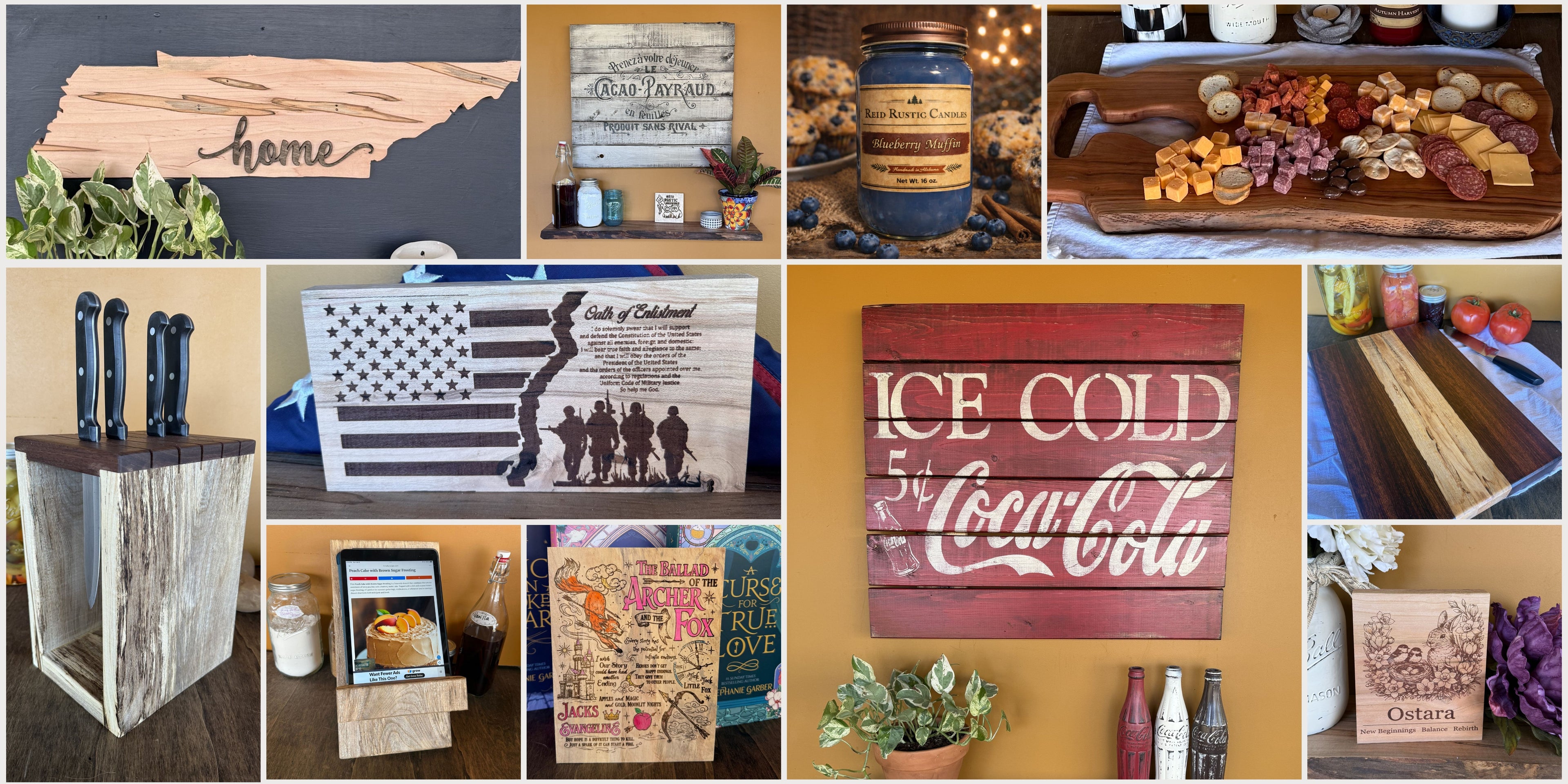 From our family workshop to your home, we create handmade kitchenware, home décor, hand poured candles, and keepsakes that bring warmth, beauty, and function to everyday life.