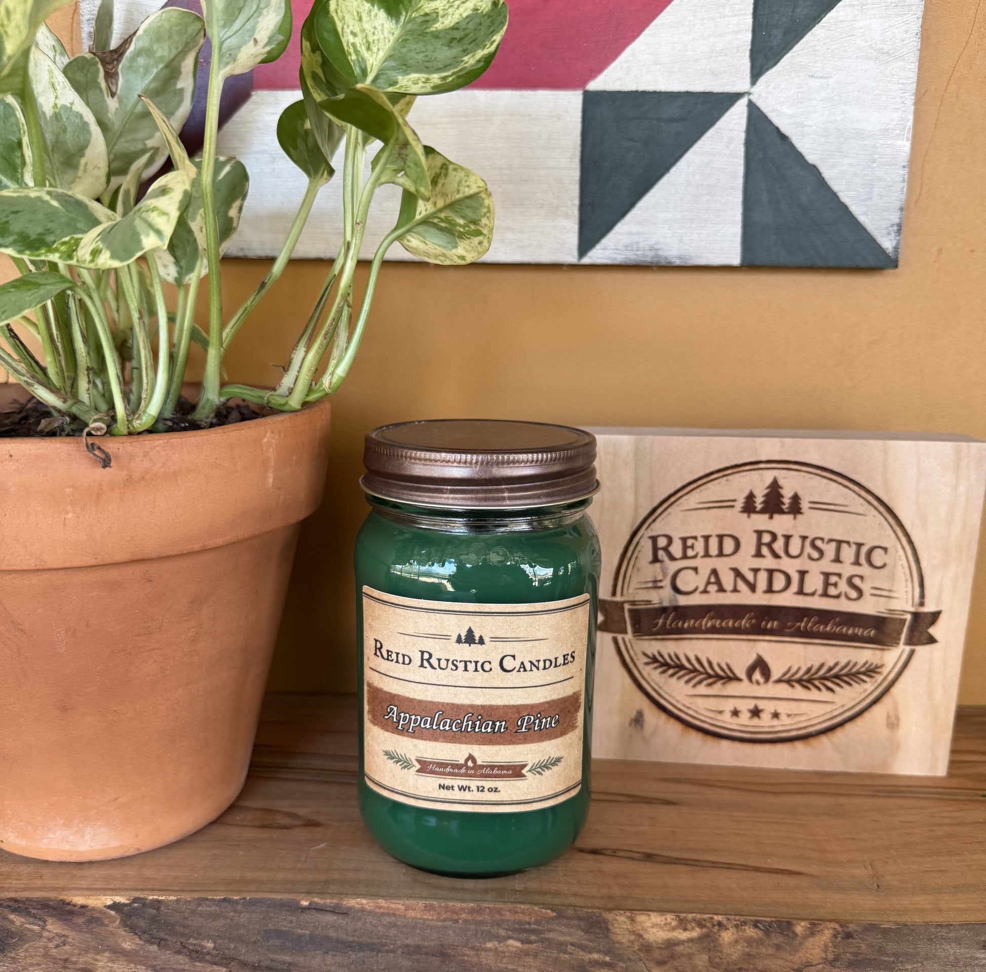 I hand-pour each 16 oz Appalachian Pine candle right here in Alabama in small batches. It’s poured into a classic mason jar and finished with a clean-burning cotton wick for that simple, honest farmhouse feel.