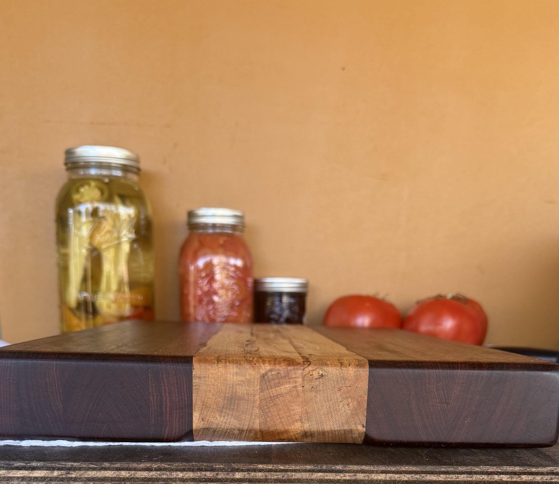 Add a touch of handcrafted charm to your kitchen with this heavy duty striped wooden cutting board. This durable cutting board weighs in at 12 pounds. We make each item by hand in our small family workshop. From cutting and sanding to finishing — making each piece truly one of a kind. This board is made from premium Chechen and Maple hardwoods, carefully joined to create a striking striped pattern that’s as durable as it is beautiful. This solid wood board is perfect for everyday use—whether chopping vegetables, slicing meats, or serving cheese and charcuterie.